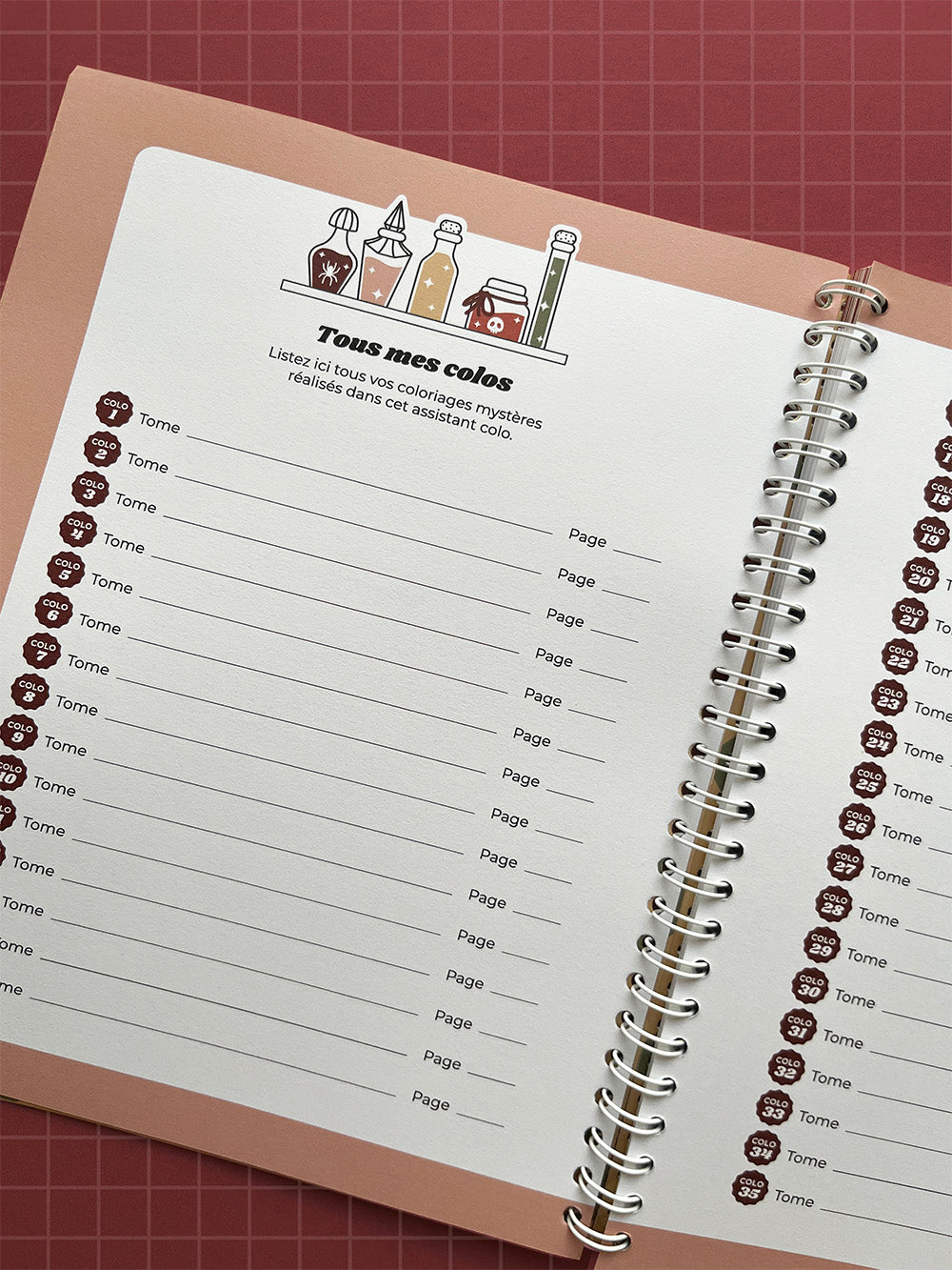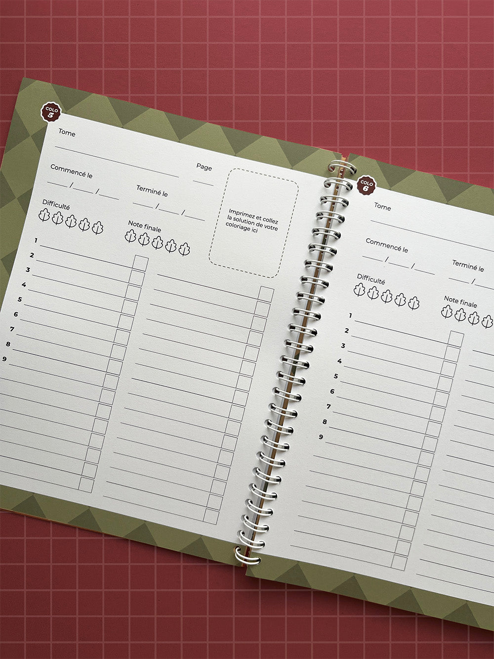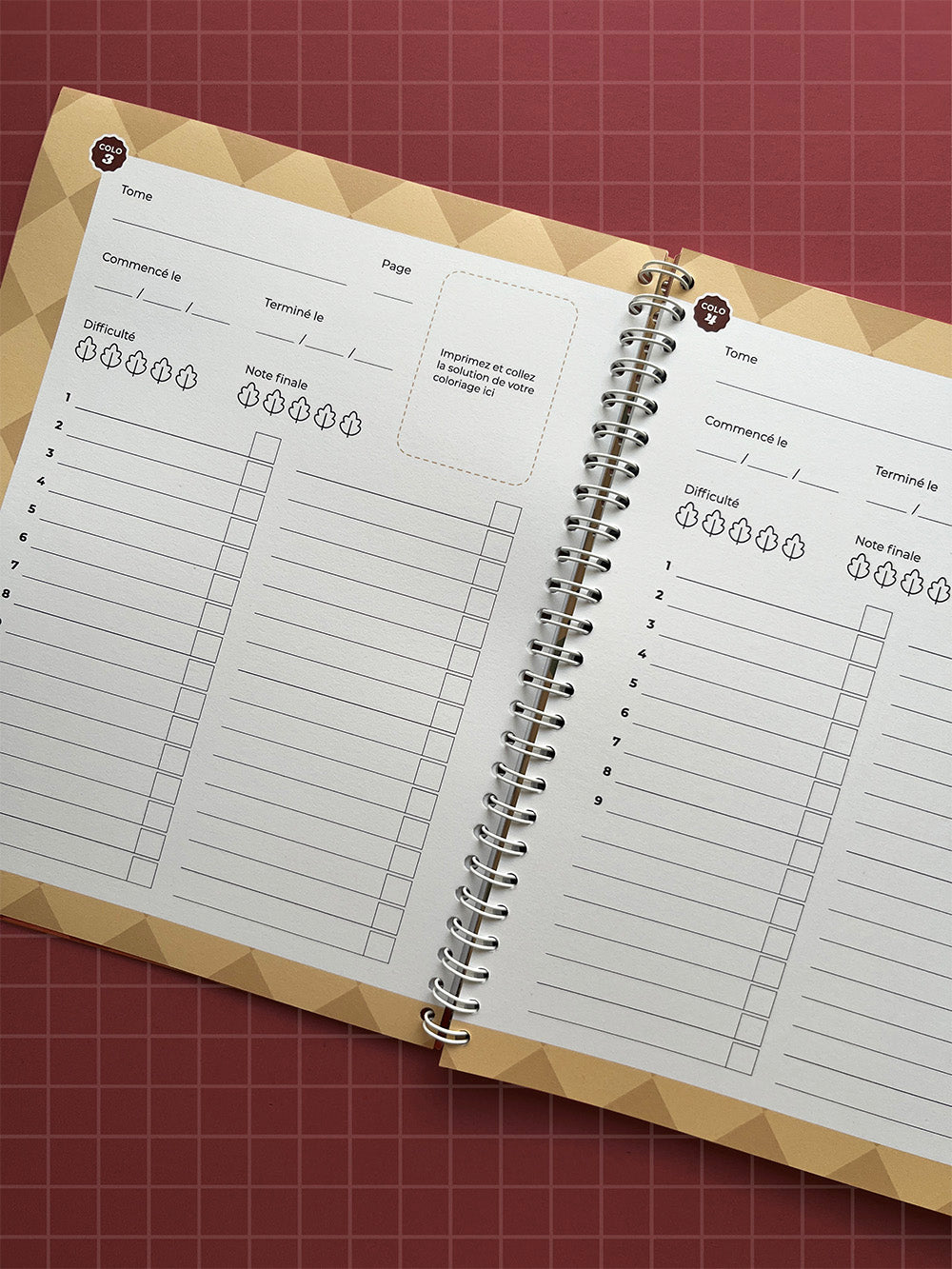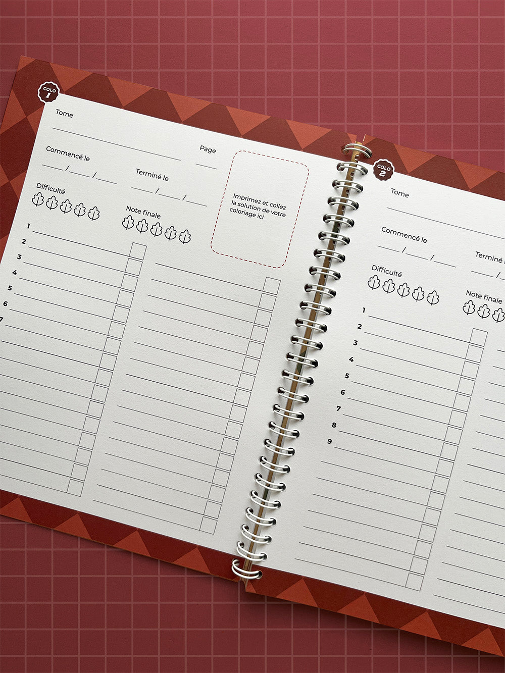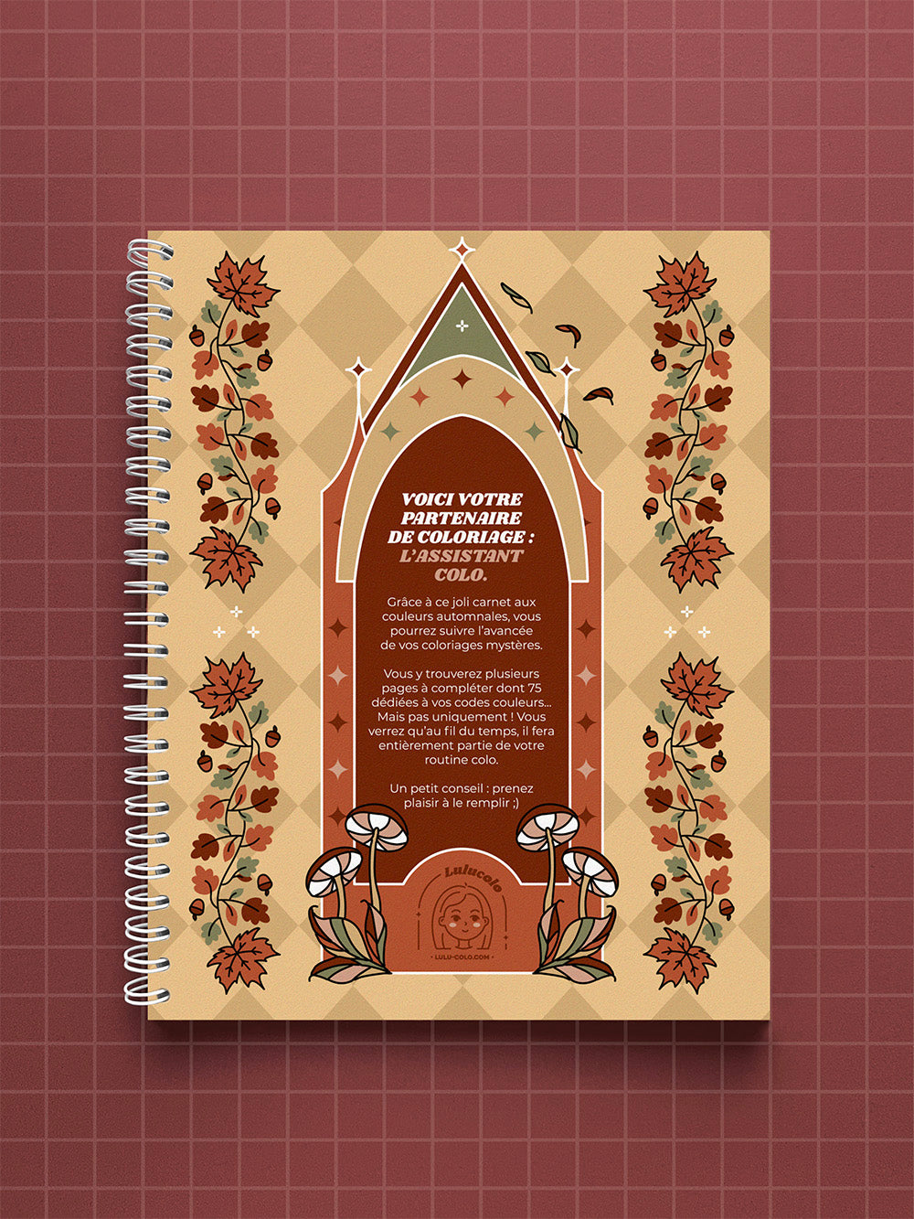 Voici votre nouveau partenaire de coloriage : l'assistant colo - édition 2 ! Grâce à ce joli carnet aux couleurs automnales, vous pourrez suivre l’avancée de vos coloriages mystères. Vous y trouverez plusieurs pages à compléter dont 75 dédiées à vos codes couleurs... Mais pas uniquement ! Vous verrez qu’au fil du temps, il fera entièrement partie de votre routine colo. Un petit conseil : prenez plaisir à le remplir ;)